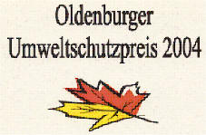 Am 19. September wurde unserer Firma für ihre Arbeit im Umweltbereich von Herrn Oberbürgermeister Dietmar Schütz der Oldenburger Umweltschutzpreis 2004 verliehen. Der mit 900,00 € verbundenen Preis wurde auf drei Umweltprojektgruppen aufgeteilt, so dass wir von diesem Betrag 300,00 € erhielten. |