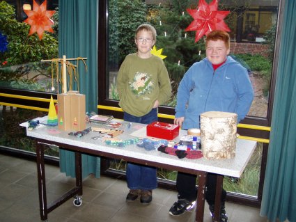 Das Jahr 2005 begann für uns mit einem neuen Projekt Um unseren Mitschülerinnen und Mitschülern die Möglichkeit zu bieten, ihr Unterrichtsmaterial in der Schule einkaufen zu können, gründeten wir einen neuen Betriebszweig, den Schreibwarenshop. Mit diesem Shop wollten wir unseren Anspruch verwirklichen, das Körperbehindertenzentrum zu einer "frischfaserpapierfreien Zone" zu machen. Daher beschränkten wir uns darauf, ausschließlich Schreibwaren aus Umweltpapier zu verkaufen. Andere Schulmaterialien sollten Umweltansprüchen genügen. Die ersten Bestellungen beim Großhandel finanzierten wir mit den Einnahmen aus dem Betriebszweig Holzofen. Wir bauten eine fahrbaren Verkaufsstand und verkauften anfangs einmal in der Woche, nach den Sommerferien zweimal wöchentlich. Im Laufe des Jahres konnten wir unser Angebot erheblich ausweiten und können jetzt alle gängigen Schulmaterialien liefern. Als Verkaufsschlager entwickelten sich unsere GEL-Writer. Für weitere Informationen klick hier. |
