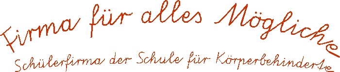 "Die Firma für alles Mögliche" ist die Schülerfirma der Klasse 5 in der Schule für Körperbehinderte Oldenburg. Sie besteht zurzeit aus 10 Schülerinnen und Schülern, ihrer Erzieherin, die sie während der Schulzeit und auch anschließend in der Tagesstätte betreut, und ihrem Klassenlehrer. Die Firma wurde im November 2002 gegründet und ist hauptsächlich im Bereich Umweltschutz tätig. Um die Projekte und Aktivitäten zu finanzieren, betätigt sich die Firma auch handwerklich und im Dienstleistungsbereich. Weitere Informationen über die Firma sind besser aus den übrigen Seiten zu entnehmen. Für Informationen über diese Homepage hinaus sind wir über unsere E-Mail: info@schulfirma-borchersweg.de , Telefon: 0441/2058621 oder unter der Adresse Firma