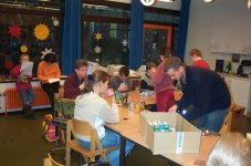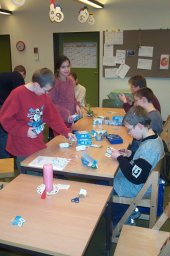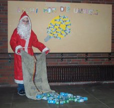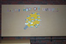 Die Schule für Körperbehinderte nimmt in den Jahren 2004 und 2005 am Projekt „Umweltschulen in Europa“ teil. Sie will in dieser Zeit neben anderen Umweltaktionen durch Energieeinsparung die CO2 - Immissionen verringern helfen. Um dem Projekt zu einem guten Start zu verhelfen, wollte die „Firma für alles Mögliche“, die Schülerfirma der Klasse 5 der Schule, herkömmliche Glühlampen in den Fluren durch Energiesparlampen austauschen lassen. In einer Nikolausaktion verkaufen MitarbeiterInnen der Schülerfirma 100 Energiesparlampen an Kinder und Jugendliche sowie MitarbeiterInnen des Körperbehindertenzentrums, die diese Sparlampen dann der Einrichtung spenden sollen. Für jede verkaufte Sparlampe wird eine Packungsseite mit dem Namen des Spenders beschriftet, um damit eine herkömmliche Glühlampe zu verdecken. Sollten alle 100 Glühlampen durch Sparlampen ausgetauscht werden können, ergibt das für die Schule bei einer Nutzung von 3 Stunden täglich eine jährliche Stromeinsparung von 3000 kW/Std. und eine Verringerung der CO2 - Immissionen von 1,8 Tonnen. (Dieser Bericht sollte eigentlich in der NWZ erscheinen. Leider wurde er nicht abgedruckt.)