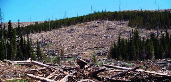 Großkahlschläge sind die typischen Art der Holzernte überall in Kanada, hier in der Provinz Alberta |
