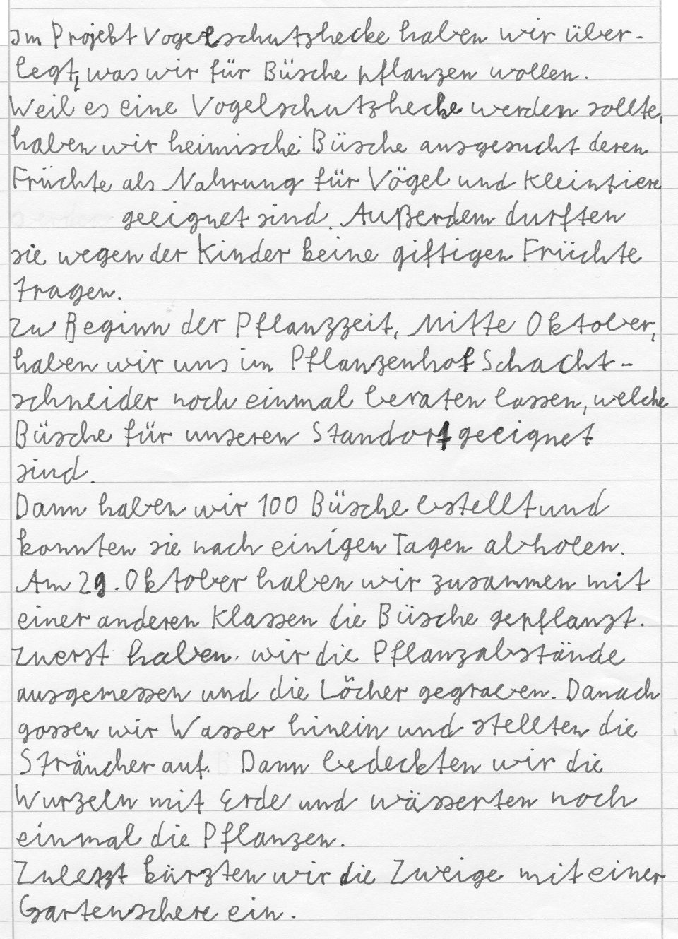 Aktion "Vogelschutzhecke" im Rahmen der Teilnahme am Projekt "Umweltschulen in Europa"
