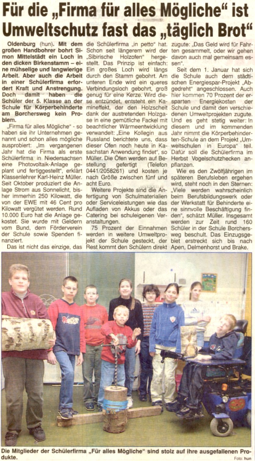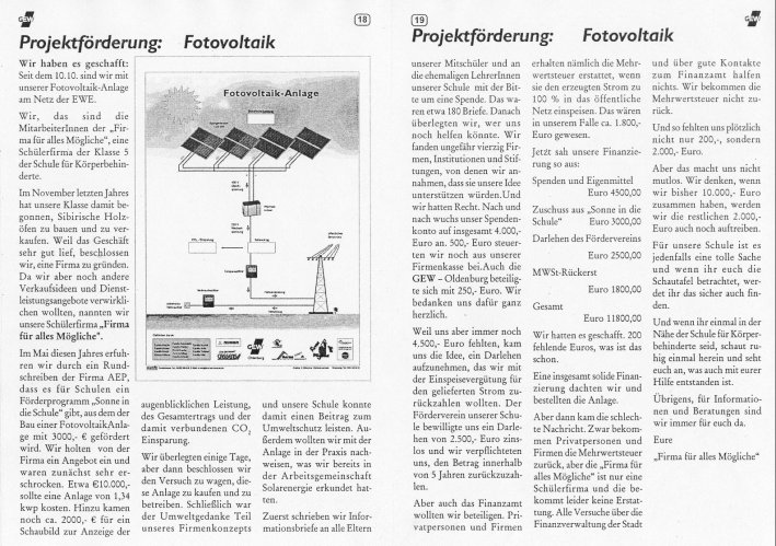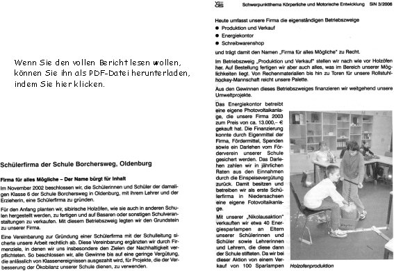 Ein Bericht in der Zeitschrift 3. Vierteljahr 2006 des Verband Sonderpädagogik
